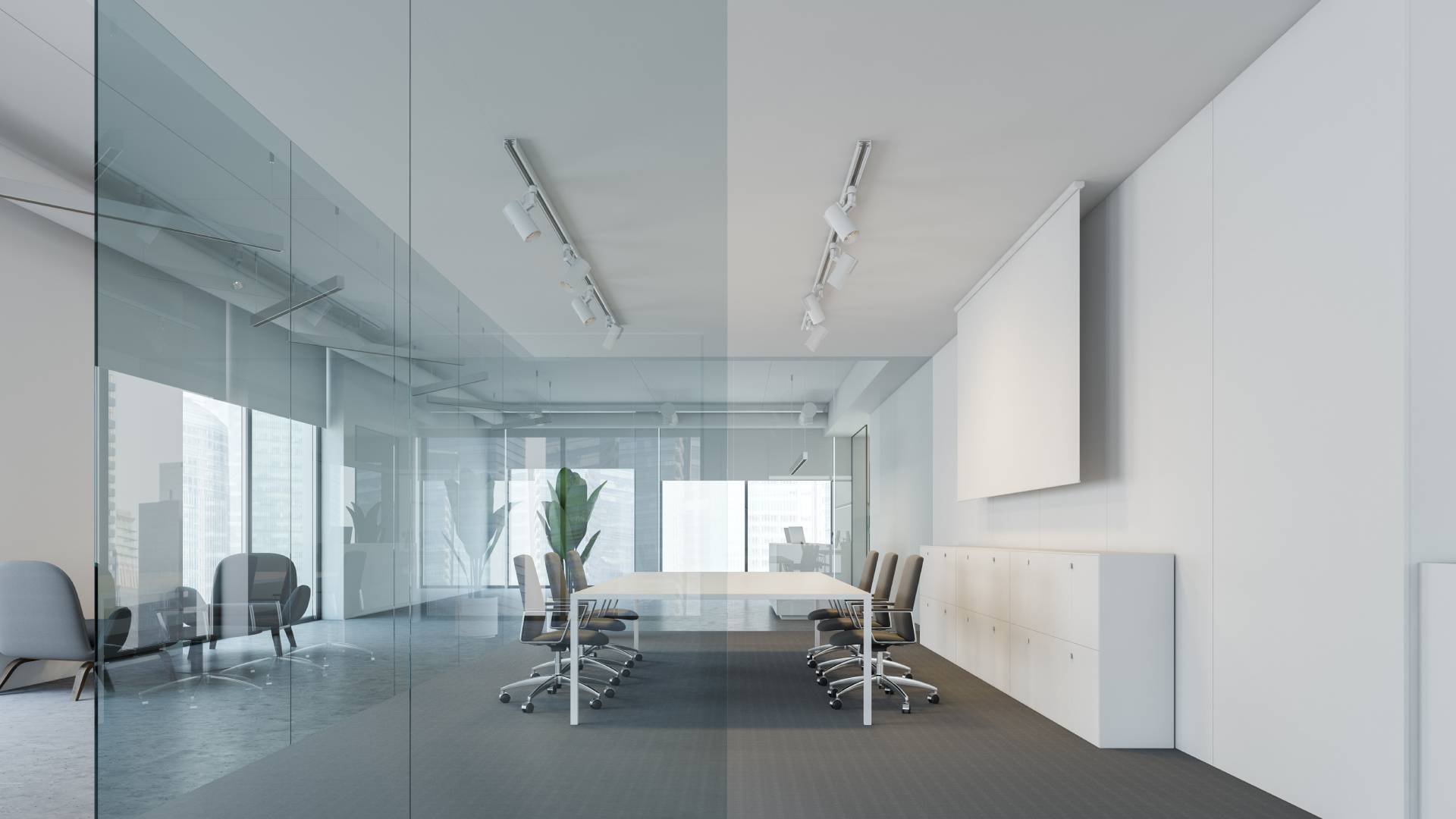 Meeting room screen installation